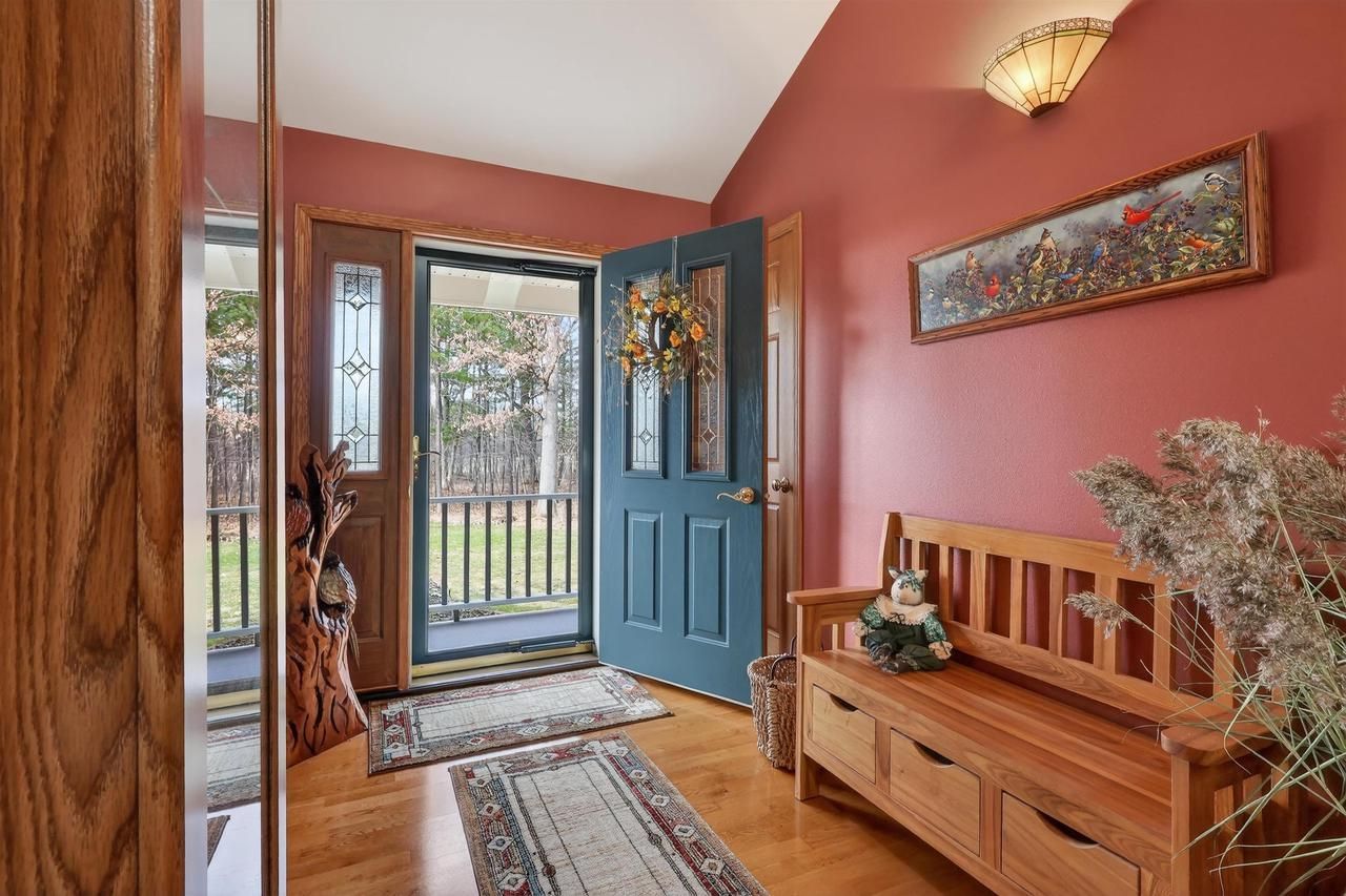 Experience the perfect blend of luxury and functionality in this exceptionally maintained home, situated on over 38 serene, wooded acres. From the moment you arrive, the level of care is evident; this property is truly in "turn-key" condition, offering a pristine environment inside and out. Heart of the Home: An expansive, open-concept main living area features soaring vaulted ceilings, creating a bright and airy atmosphere. The massive chef's kitchen is a focal point, anchored by a large center island?perfect for hosting and daily life. Primary Suite Sanctuary: Retreat to the primary suite, which boasts a spacious walk-in closet and a private ensuite bath featuring a classic clawfoot tub for ultimate relaxation, or you can relax in your hot tub on the private 3 season porch. Smart Layout: The split-bedroom design ensures maximum privacy, while a dedicated main-floor private office provides the ideal quiet space for remote work or study. Functional Luxury: A large laundry room offers abundant cabinetry for organization, and the full basement includes a finished full bath and a