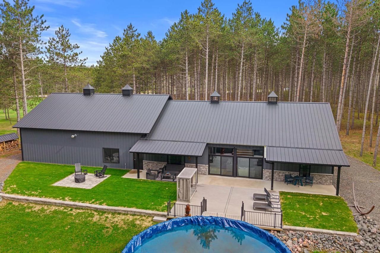 In Rome! It's been called a Shouse or a Barndominium. I just call it fantastic! On 5 wooded acres nearly adjacent to Lake Petenwell just opposite the Chester Creek Launch, this furnished 3-year old is the epitome of spaciousness. Add in the backyard pool, 3 covered porches, and the 40x48 heated garage and you have the perfect setup for a life of leisure. Stepping inside, you'll understand why it's called a GREAT ROOM. Open beyond belief, the room features a beamed cathedral ceiling, LVP flooring, and large windows facing the backyard "Trex-type" deck and above-ground 27' diameter pool; beautiful modern kitchen w/ an abundance of cabinetry, quartz tops, large work island and breakfast bar; split ranch design features a roomy master w/ two walk-ins, double vanity, and a huge tile shower; 2 more bedrooms w/ walk-ins, a full bath, and laundry room; zero-entry all around; metal siding with stone accents; 12x24 shed; above-ground fire pit; groomed backyard lawn; ATV trails on property. Nice!
