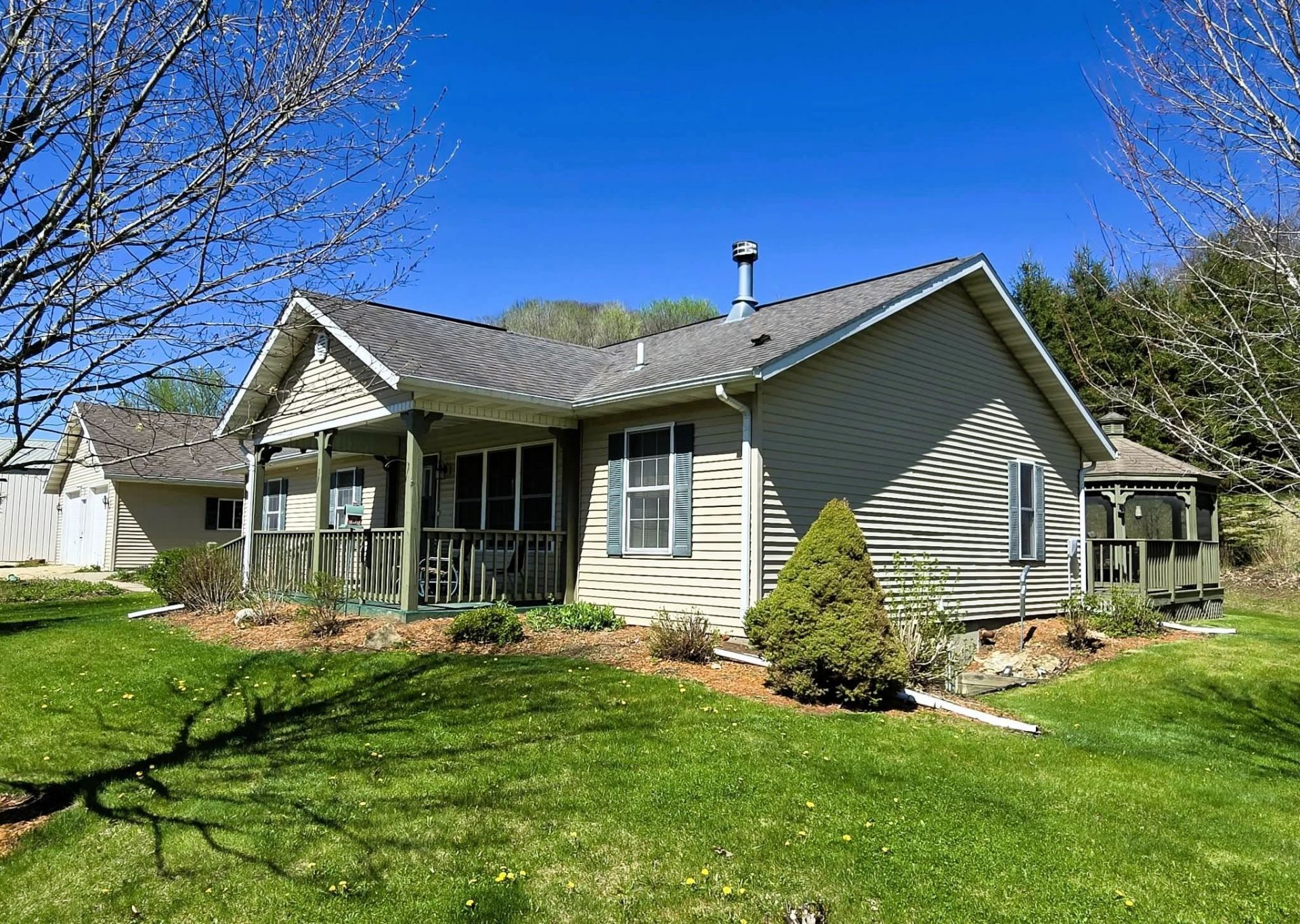 Cozy Country ranch style home on a full poured concrete basement with oversized 40x27 garage plus a 56x32 shed with full concrete floor on 19.85 +/- acres. Well situated within a scenic rural Driftless Region valley just a short walk to Class I & II trout streams, this property has a 3.5 acre open field, a 1 ac potential pasture area with shade trees, plus over 13 acres of hardwoods and pine with a utv/atv trail to the hill top with a commanding view of the West Fork Knapp Creek Valley. Located in Crawford County near the Richland County line 22.8 mi west of Richland Center, 13.4 mi to Boscobel, and 27 mi to Viroqua WI.