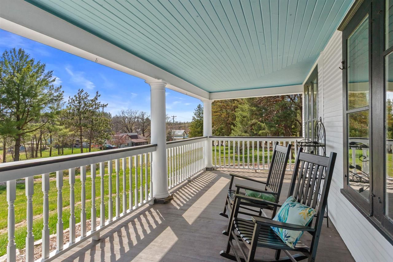 Hancock ? Classic Charm on Pine Lake Turn-of-the-century 3-story home offering 4 bedrooms and 2.5 baths, filled with original woodwork, hardwood floors, and timeless character. Features include an open staircase, cozy fireplace nook, formal dining room with leaded glass windows, and French doors leading to a bright sunroom. Set on a scenic hillside with views of Pine Lake, this property includes owned water frontage and approximately 3 acres for added privacy and expansion. Finished attic provides additional living space. The inviting front porch is perfect for relaxing and taking in the peaceful lake views. Carriage house and former B&B history add to this unique offering.