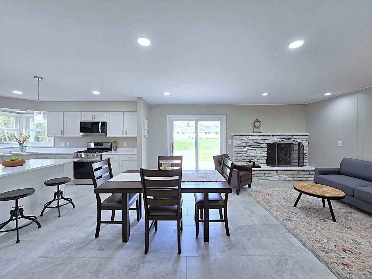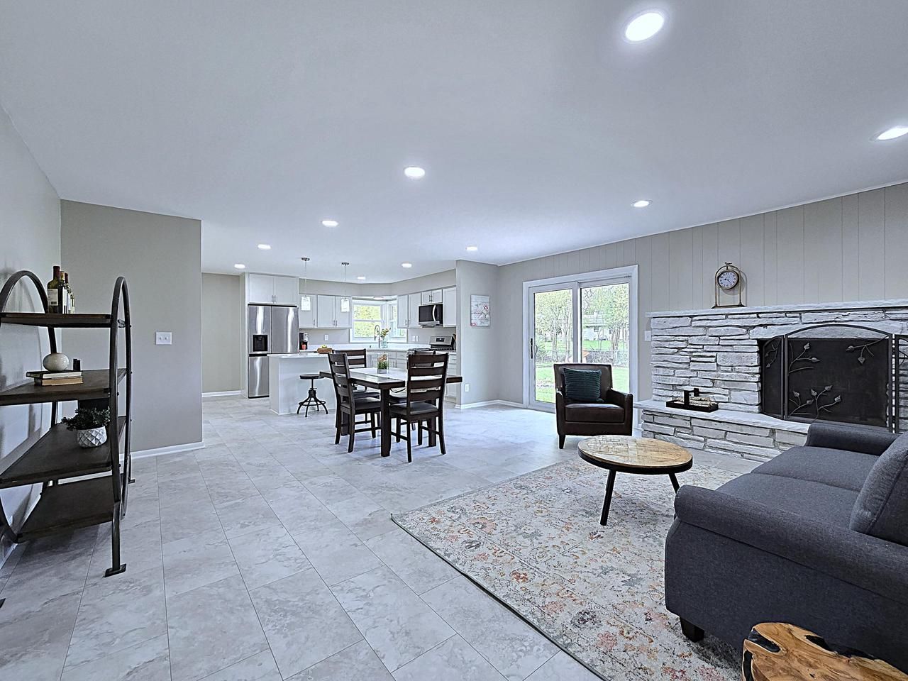 Space abounds inside and out in this graciously updated 3 bedroom/2.5 bathroom ranch that is move-in-ready and waiting for a new owner! An open layout showcases a new kitchen boasting stylish new cabinetry, elegant quartz counters, island w/snack bar, & sleek stainless steel appliances. The kitchen is open to an accommodating family room w/patio walkout & fireplace to make for a toasty retreat. A living room/dining room combo provides formal living area. Refinished hardwoods grace all three good-sized bedrooms. The primary bedroom offers a private full bath. An updated full bath serves the main as well. A finished lower level provides a huge rec room & game area plus a home office & half bath. Enjoy beautiful days from the patio overlooking the large, fenced backyard. It's a must see home!