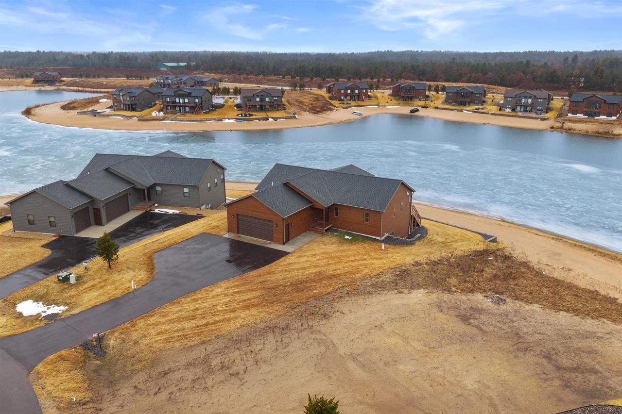 Enjoy breathtaking sunset views and 200 degrees of stunning water frontage from this exceptional lake property. An island sits within swimming distance of your private beach area, creating the perfect setting for adventure and relaxation. Designed for low-maintenance living with durable fiber cement siding and decking, the home features granite countertops, stainless steel appliances, vaulted ceilings, a cozy fireplace, expansive deck, and a lower level walkout for seamless indoor/outdoor living. Includes access to a boat slip on Castle Rock and access to a clubhouse with pool, tennis courts, private pond, and more! Offering the ultimate lake lifestyle.